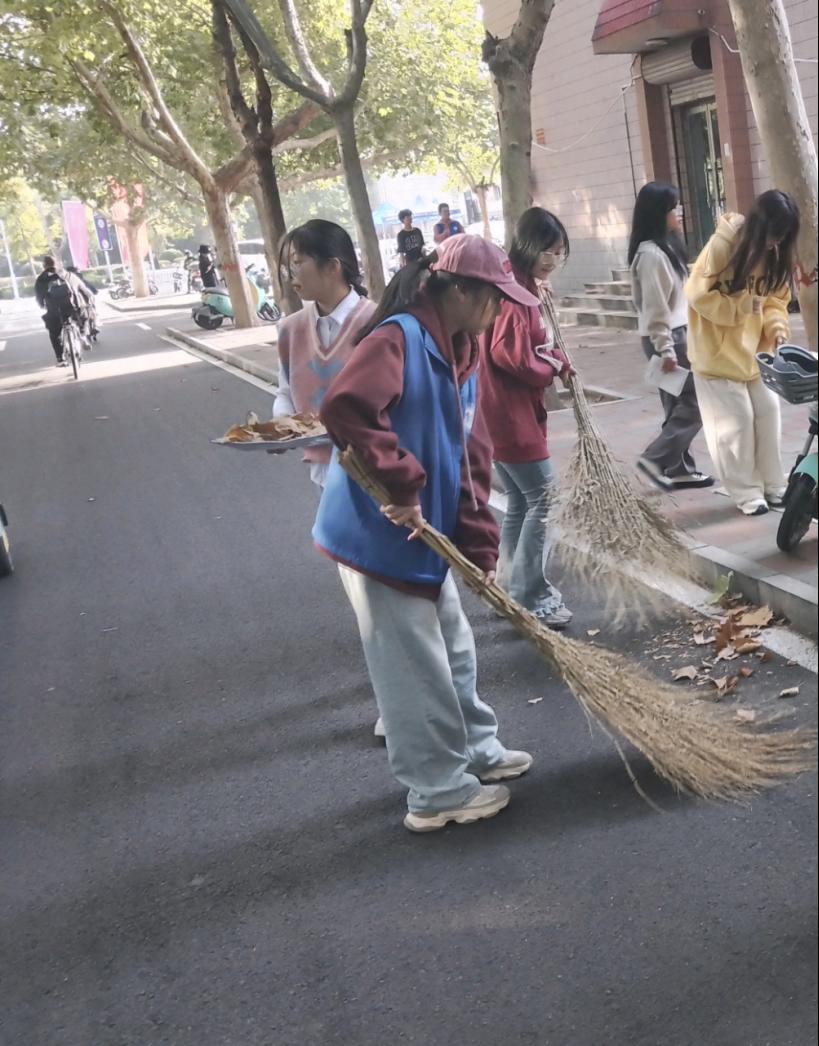 他们积极参与“校园清扫”活动,在活动中手持清扫工具,认真清扫,整理教室、清扫宿舍楼落叶、捡拾路旁垃圾,将校园打扫得干净整洁,不放过任何一个角落,为同学们的生活和学习营造了舒适卫生的环境。